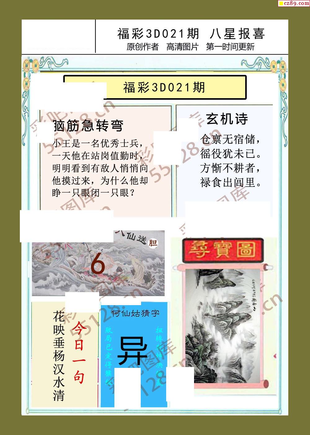 八星报喜26年021期福彩3d画谜