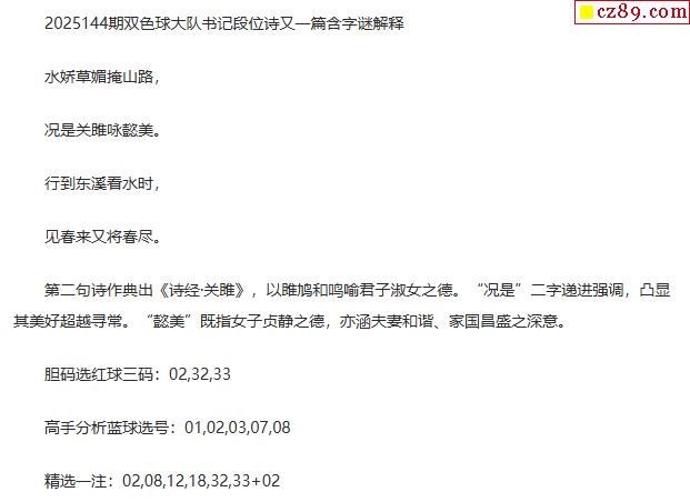 > 25年福彩双色球144期 大队书记段位诗另一篇